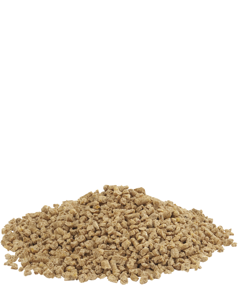 Forma de fărâmițare promovează un aport neted fără vărsare excesivă și este ideală atât pentru speciile mai mari, cât și pentru cele mai mici. Coccidiostatul protejează animalele împotriva coccidiozei.